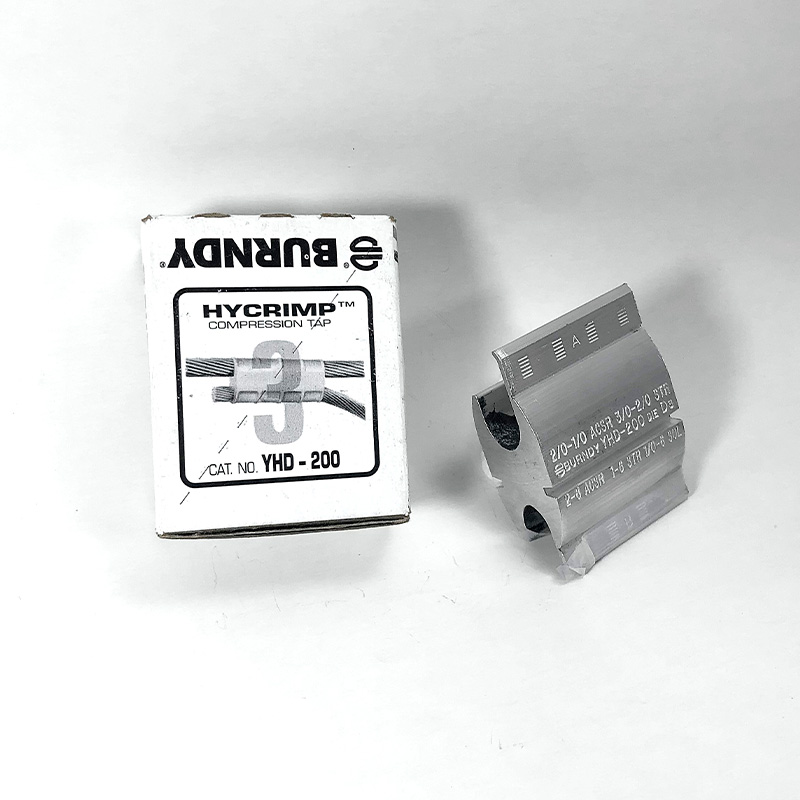 Bymmetallic connector of aluminum alloy compression derivation aluminum for 70/16-35mm2 section of 70/16-35mm2, with inhibitory compound, used for medium and low tension air networks, other technical characteristics and details according to specification. Ref. Brand Burndy Model YHD – 200