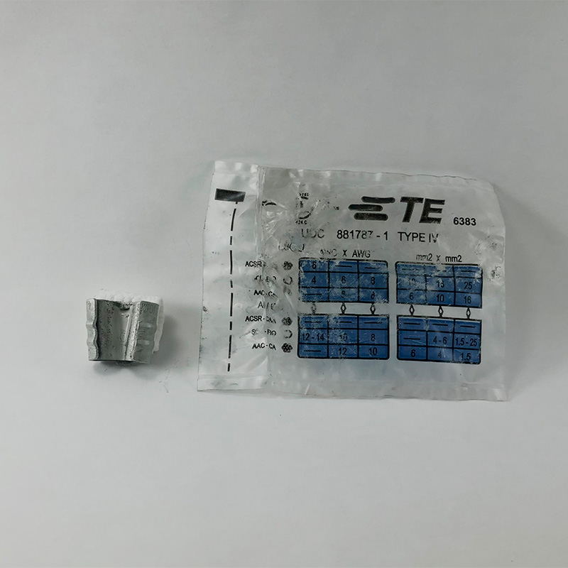 Copper derivation connector tinned Wedge type for copper conductor of 10-16 / 1,5 – 10mm2 section, used for low voltage aerial networks in high corrosion environments, other technical characteristics and details according to specification. Ref. Brand Tyco Electronics Model UDC code 881787 – 1