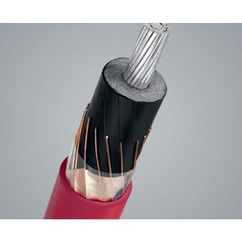 Energy cable type Na2XSY Unipolar of 120mm2 section, conductor compact concentric concentric section of pure aluminum circular with cross-linked polyethylene (XLPE), semiconductor screen on the conductor and insulation, metallic copper wire screen on the second semiconductor, PVC outer cover, EO / E = 18 / 30KV design tension, used in 22,9KV underground distribution networks, other technical features according to specification